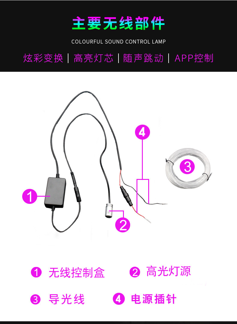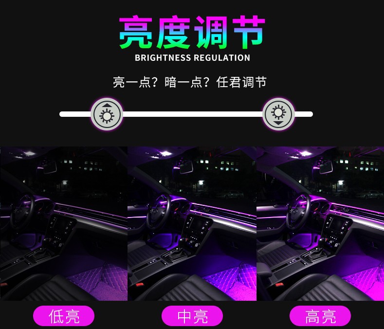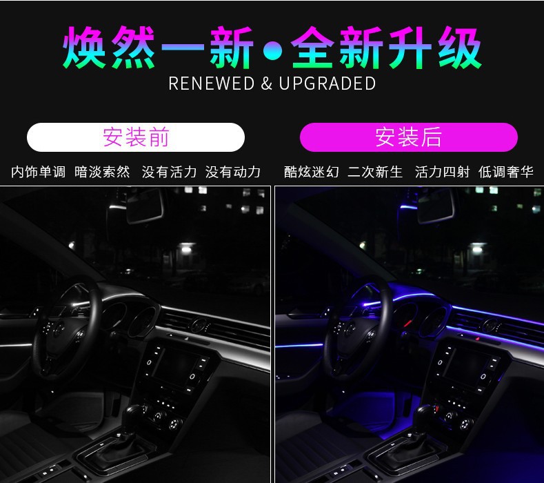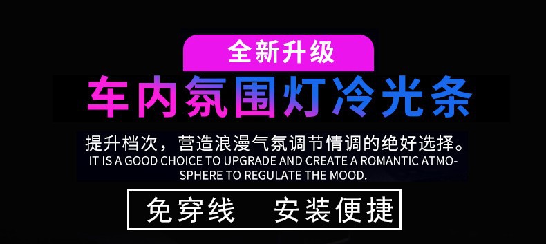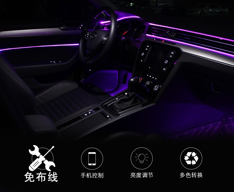 汽车LED氛围灯 车内气氛灯免穿线APP冷光线中控车门脚底声控灯