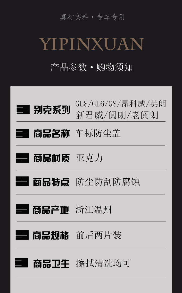 本网页所展示的有关【别克GL8/GL6/昂科威/英朗/君威/阅朗/GS/威朗透明车标防尘盖防盗_汽车改装_苍南县致远汽摩用品厂】的信息/图片/参数等由全球零部件网的会员【苍南县致远汽摩用品厂】提供,由全球零部件网会员【苍南县致远汽摩用品厂】自行对信息/图片/参数等的真实性、准确性和合法性负责,本平台(本网站)仅提供展示服务,请谨慎交易,因交易而产生的法律关系及法律纠纷由您自行协商解决,本平台(本网站)对此不承担任何责任。您在本网页可以浏览【别克GL8/GL6/昂科威/英朗/君威/阅朗/GS/威朗透明车标防尘盖防盗_汽车改装_苍南县致远汽摩用品厂】有关的信息/图片/价格等及提供【别克GL8/GL6/昂科威/英朗/君威/阅朗/GS/威朗透明车标防尘盖防盗_汽车改装_苍南县致远汽摩用品厂】的商家公司简介、开元kaiyuan(中国)等信息。