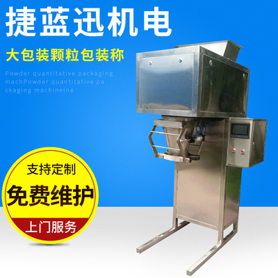 该包装秤专为食品,化工,肥料,BB肥,种子大米,粮食。等流动性较好的颗粒料物料和原粒物料的定量包装而设计,颗粒的采用自流加震动式两种结构通过变频器让关料门大小与振动器结合共同完成快下与慢下的定量完成进入缓冲料仓,颗粒的通过自流门大小调节和慢下震动三级方式来控制。