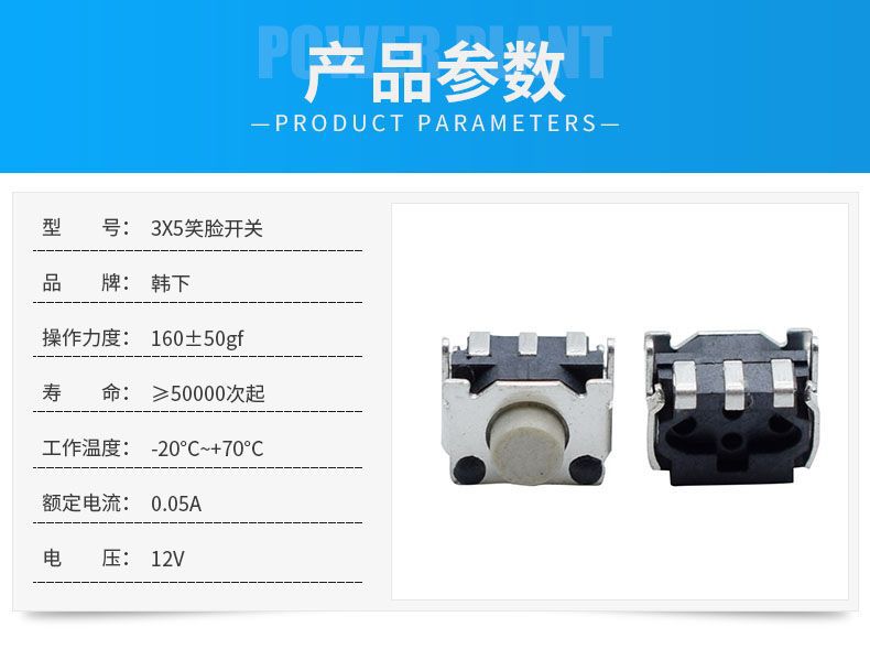 本网页所展示的有关【微型带固定支架轻触按键开关三脚贴片侧按3*5笑脸开关3.3*4.5*3.4_开关_深圳市韩下电子有限公司】的信息/图片/参数等由全球零部件网的会员【深圳市韩下电子有限公司】提供,由全球零部件网会员【深圳市韩下电子有限公司】自行对信息/图片/参数等的真实性、准确性和合法性负责,本平台(本网站)仅提供展示服务,请谨慎交易,因交易而产生的法律关系及法律纠纷由您自行协商解决,本平台(本网站)对此不承担任何责任。您在本网页可以浏览【微型带固定支架轻触按键开关三脚贴片侧按3*5笑脸开关3.3*4.5*3.4_开关_深圳市韩下电子有限公司】有关的信息/图片/价格等及提供【微型带固定支架轻触按键开关三脚贴片侧按3*5笑脸开关3.3*4.5*3.4_开关_深圳市韩下电子有限公司】的商家公司简介、开元kaiyuan(中国)等信息。