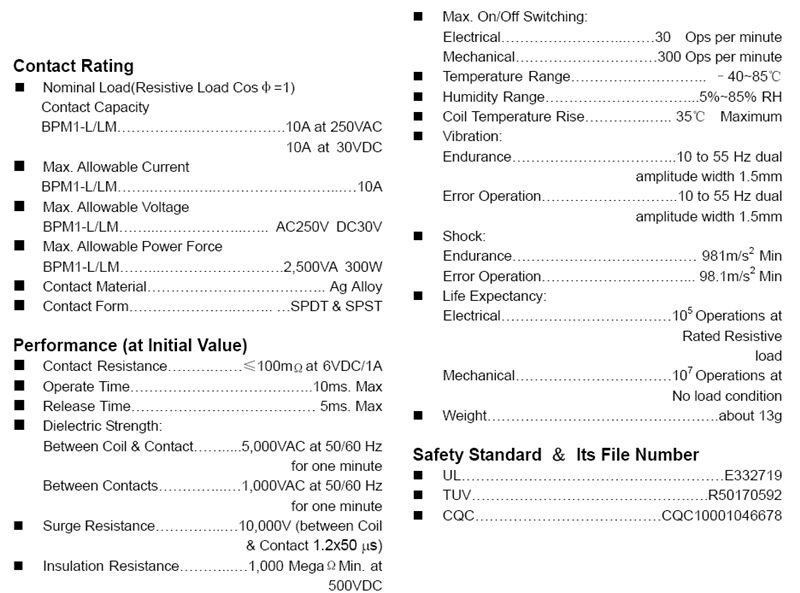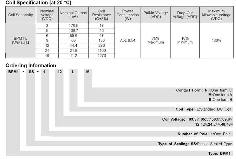 具体BPM2-SS-212LM 继电器的参数如下图: