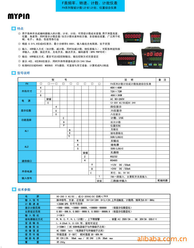 4、显示:6位显示,同时外供传感器电源12V/24V/30mA,8位显示订做