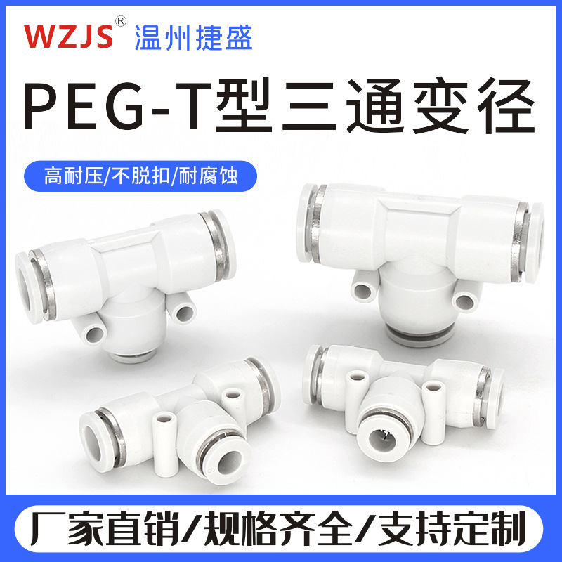 气管快速接头PE6快插8塑料10气动配件T型三通三叉转换12/16mm变径