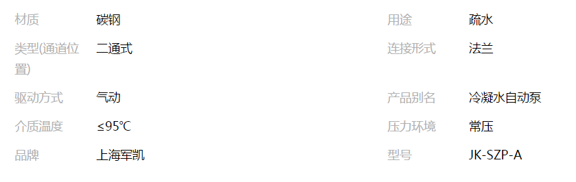 本网页所展示的有关【供应疏水自动加压器,冷凝水自动泵,冷凝水回收器_管材及管接头_上海军凯管件制造有限公司】的信息/图片/参数等由全球零部件网的会员【上海军凯管件制造有限公司】提供,由全球零部件网会员【上海军凯管件制造有限公司】自行对信息/图片/参数等的真实性、准确性和合法性负责,本平台(本网站)仅提供展示服务,请谨慎交易,因交易而产生的法律关系及法律纠纷由您自行协商解决,本平台(本网站)对此不承担任何责任。您在本网页可以浏览【供应疏水自动加压器,冷凝水自动泵,冷凝水回收器_管材及管接头_上海军凯管件制造有限公司】有关的信息/图片/价格等及提供【供应疏水自动加压器,冷凝水自动泵,冷凝水回收器_管材及管接头_上海军凯管件制造有限公司】的商家公司简介、开元kaiyuan(中国)等信息。