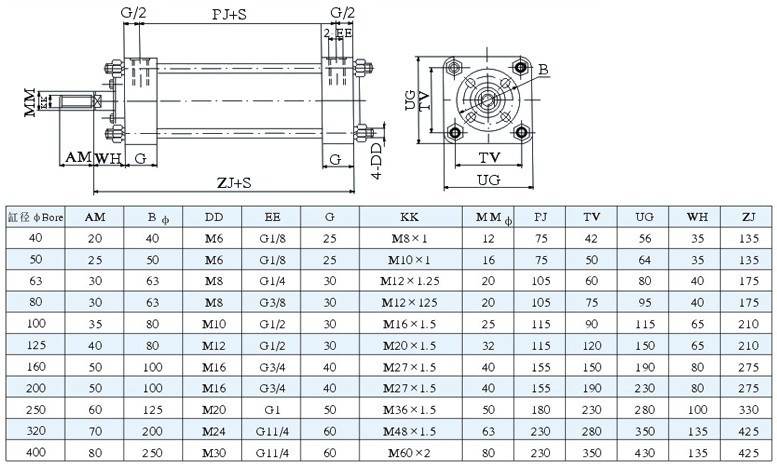 气缸主要技术参数