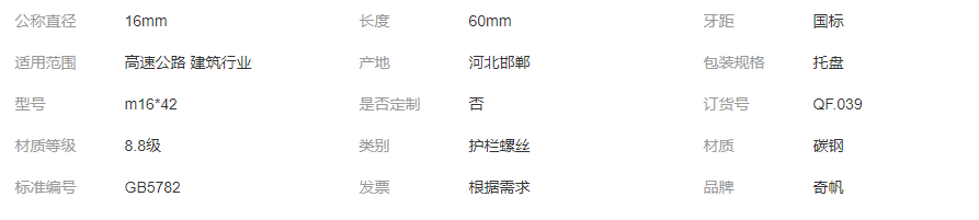 本网页所展示的有关【高速专用护栏螺丝 热镀锌桥梁防盗螺栓 AB防盗护兰丝 奇帆现货_螺栓_河北奇帆紧固件制造有限公司】的信息/图片/参数等由全球零部件网的会员【河北奇帆紧固件制造有限公司】提供,由全球零部件网会员【河北奇帆紧固件制造有限公司】自行对信息/图片/参数等的真实性、准确性和合法性负责,本平台(本网站)仅提供展示服务,请谨慎交易,因交易而产生的法律关系及法律纠纷由您自行协商解决,本平台(本网站)对此不承担任何责任。您在本网页可以浏览【高速专用护栏螺丝 热镀锌桥梁防盗螺栓 AB防盗护兰丝 奇帆现货_螺栓_河北奇帆紧固件制造有限公司】有关的信息/图片/价格等及提供【高速专用护栏螺丝 热镀锌桥梁防盗螺栓 AB防盗护兰丝 奇帆现货_螺栓_河北奇帆紧固件制造有限公司】的商家公司简介、开元kaiyuan(中国)等信息。