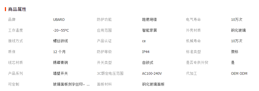 产品参数Specifications