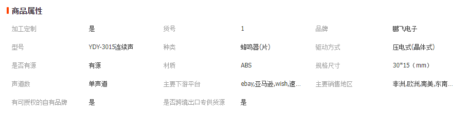 本网页所展示的有关【厂家批发压电有源蜂鸣器3015带引线白壳黑壳3V-24V压电式蜂鸣器_蜂鸣器_宿州市鹏飞电子有限公司】的信息/图片/参数等由全球零部件网的会员【宿州市鹏飞电子有限公司】提供,由全球零部件网会员【宿州市鹏飞电子有限公司】自行对信息/图片/参数等的真实性、准确性和合法性负责,本平台(本网站)仅提供展示服务,请谨慎交易,因交易而产生的法律关系及法律纠纷由您自行协商解决,本平台(本网站)对此不承担任何责任。您在本网页可以浏览【厂家批发压电有源蜂鸣器3015带引线白壳黑壳3V-24V压电式蜂鸣器_蜂鸣器_宿州市鹏飞电子有限公司】有关的信息/图片/价格等及提供【厂家批发压电有源蜂鸣器3015带引线白壳黑壳3V-24V压电式蜂鸣器_蜂鸣器_宿州市鹏飞电子有限公司】的商家公司简介、开元kaiyuan(中国)等信息。