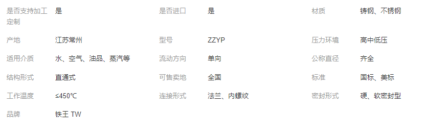 本网页所展示的有关【铁王供应 不锈钢自力式调节阀 ZZYP-16P 氮气稳压阀 高温蒸汽减压阀_阀门_江苏铁王阀门科技有限公司】的信息/图片/参数等由全球零部件网的会员【江苏铁王阀门科技有限公司】提供,由全球零部件网会员【江苏铁王阀门科技有限公司】自行对信息/图片/参数等的真实性、准确性和合法性负责,本平台(本网站)仅提供展示服务,请谨慎交易,因交易而产生的法律关系及法律纠纷由您自行协商解决,本平台(本网站)对此不承担任何责任。您在本网页可以浏览【铁王供应 不锈钢自力式调节阀 ZZYP-16P 氮气稳压阀 高温蒸汽减压阀_阀门_江苏铁王阀门科技有限公司】有关的信息/图片/价格等及提供【铁王供应 不锈钢自力式调节阀 ZZYP-16P 氮气稳压阀 高温蒸汽减压阀_阀门_江苏铁王阀门科技有限公司】的商家公司简介、开元kaiyuan(中国)等信息。