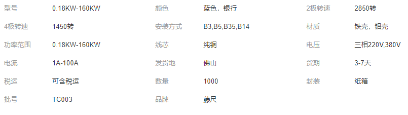 本网页所展示的有关【藤尺三相异步电动机大功率0.18KW-160KW原厂发货_电机_佛山市藤尺机电设备有限公司】的信息/图片/参数等由全球零部件网的会员【佛山市藤尺机电设备有限公司】提供,由全球零部件网会员【佛山市藤尺机电设备有限公司】自行对信息/图片/参数等的真实性、准确性和合法性负责,本平台(本网站)仅提供展示服务,请谨慎交易,因交易而产生的法律关系及法律纠纷由您自行协商解决,本平台(本网站)对此不承担任何责任。您在本网页可以浏览【藤尺三相异步电动机大功率0.18KW-160KW原厂发货_电机_佛山市藤尺机电设备有限公司】有关的信息/图片/价格等及提供【藤尺三相异步电动机大功率0.18KW-160KW原厂发货_电机_佛山市藤尺机电设备有限公司】的商家公司简介、开元kaiyuan(中国)等信息。