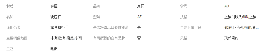 本网页所展示的有关【液压支撑杆 家具橱柜门铜芯液压60N80N100N阻尼缓冲气弹簧液压杆_五金配件_广州家圆五金制品有限公司】的信息/图片/参数等由全球零部件网的会员【广州家圆五金制品有限公司】提供,由全球零部件网会员【广州家圆五金制品有限公司】自行对信息/图片/参数等的真实性、准确性和合法性负责,本平台(本网站)仅提供展示服务,请谨慎交易,因交易而产生的法律关系及法律纠纷由您自行协商解决,本平台(本网站)对此不承担任何责任。您在本网页可以浏览【液压支撑杆 家具橱柜门铜芯液压60N80N100N阻尼缓冲气弹簧液压杆_五金配件_广州家圆五金制品有限公司】有关的信息/图片/价格等及提供【液压支撑杆 家具橱柜门铜芯液压60N80N100N阻尼缓冲气弹簧液压杆_五金配件_广州家圆五金制品有限公司】的商家公司简介、开元kaiyuan(中国)等信息。