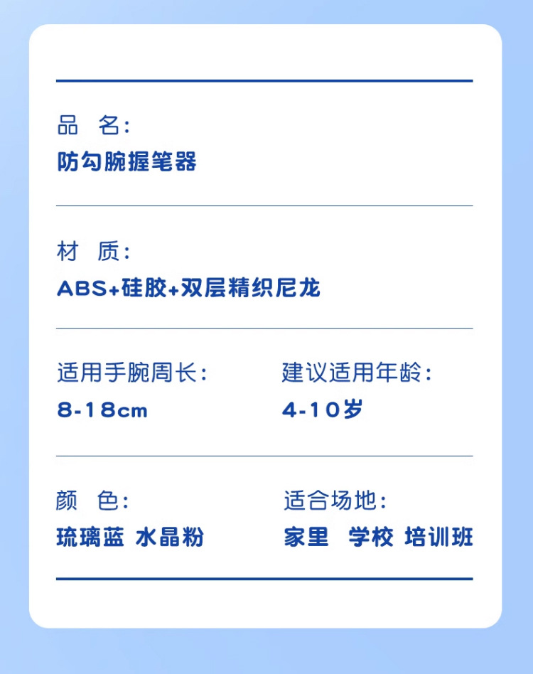 本网页所展示的有关【防勾腕矫正器小学生专用握笔器幼儿园初学者握笔姿势写字练字矫正_综合配件_安徽柏拉德文化用品有限公司】的信息/图片/参数等由全球零部件网的会员【安徽柏拉德文化用品有限公司】提供,由全球零部件网会员【安徽柏拉德文化用品有限公司】自行对信息/图片/参数等的真实性、准确性和合法性负责,本平台(本网站)仅提供展示服务,请谨慎交易,因交易而产生的法律关系及法律纠纷由您自行协商解决,本平台(本网站)对此不承担任何责任。您在本网页可以浏览【防勾腕矫正器小学生专用握笔器幼儿园初学者握笔姿势写字练字矫正_综合配件_安徽柏拉德文化用品有限公司】有关的信息/图片/价格等及提供【防勾腕矫正器小学生专用握笔器幼儿园初学者握笔姿势写字练字矫正_综合配件_安徽柏拉德文化用品有限公司】的商家公司简介、开元kaiyuan(中国)等信息。