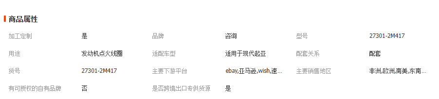 本网页所展示的有关【27301-2M417适用于现代起亚发动机系统点火线圈273012M417_点火线圈_香河贤通商贸有限公司】的信息/图片/参数等由全球零部件网的会员【香河贤通商贸有限公司】提供,由全球零部件网会员【香河贤通商贸有限公司】自行对信息/图片/参数等的真实性、准确性和合法性负责,本平台(本网站)仅提供展示服务,请谨慎交易,因交易而产生的法律关系及法律纠纷由您自行协商解决,本平台(本网站)对此不承担任何责任。您在本网页可以浏览【27301-2M417适用于现代起亚发动机系统点火线圈273012M417_点火线圈_香河贤通商贸有限公司】有关的信息/图片/价格等及提供【27301-2M417适用于现代起亚发动机系统点火线圈273012M417_点火线圈_香河贤通商贸有限公司】的商家公司简介、开元kaiyuan(中国)等信息。